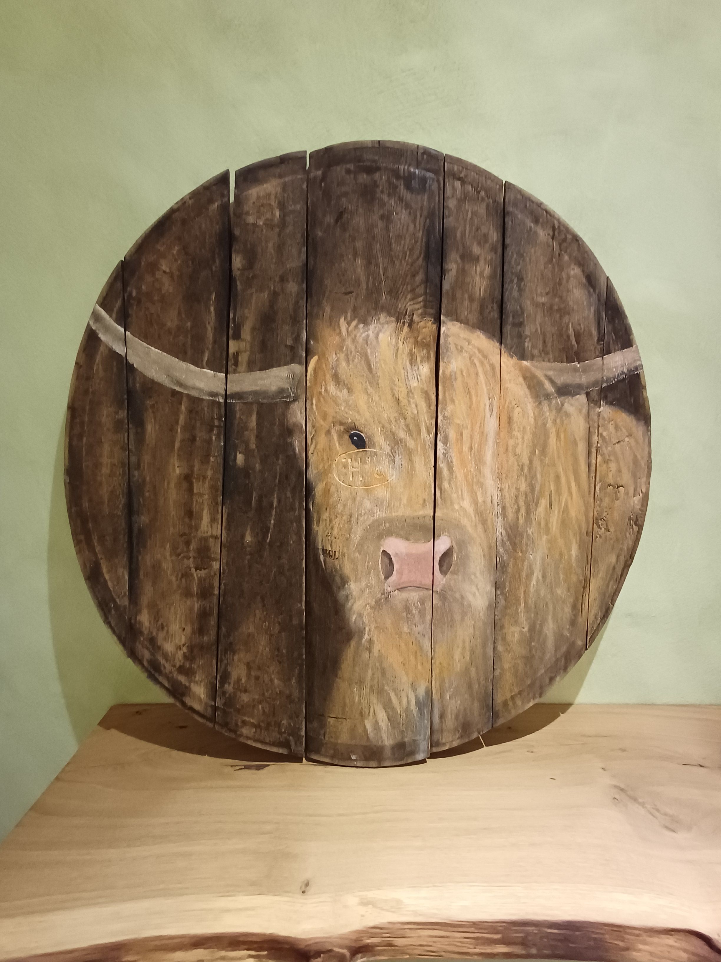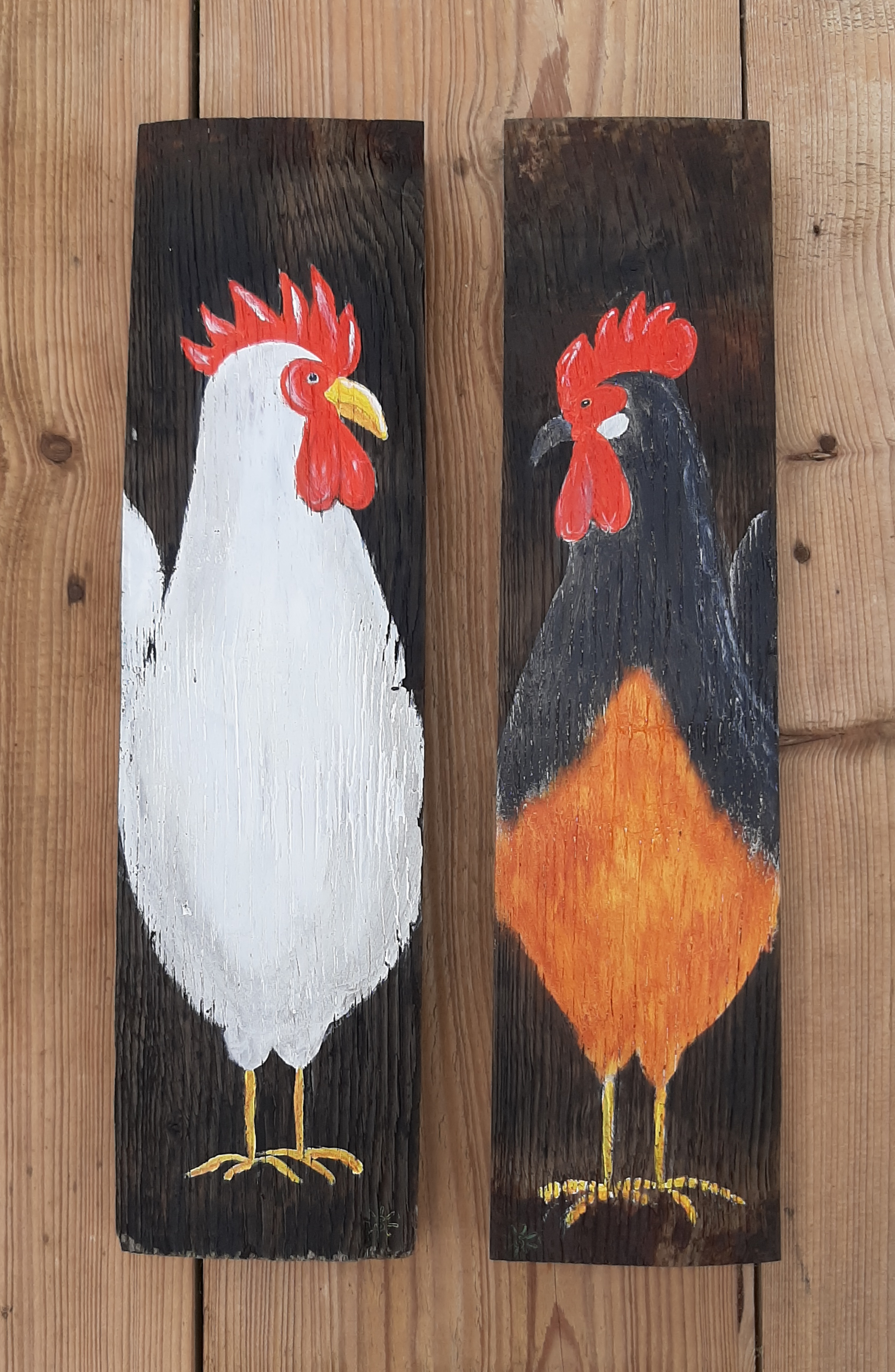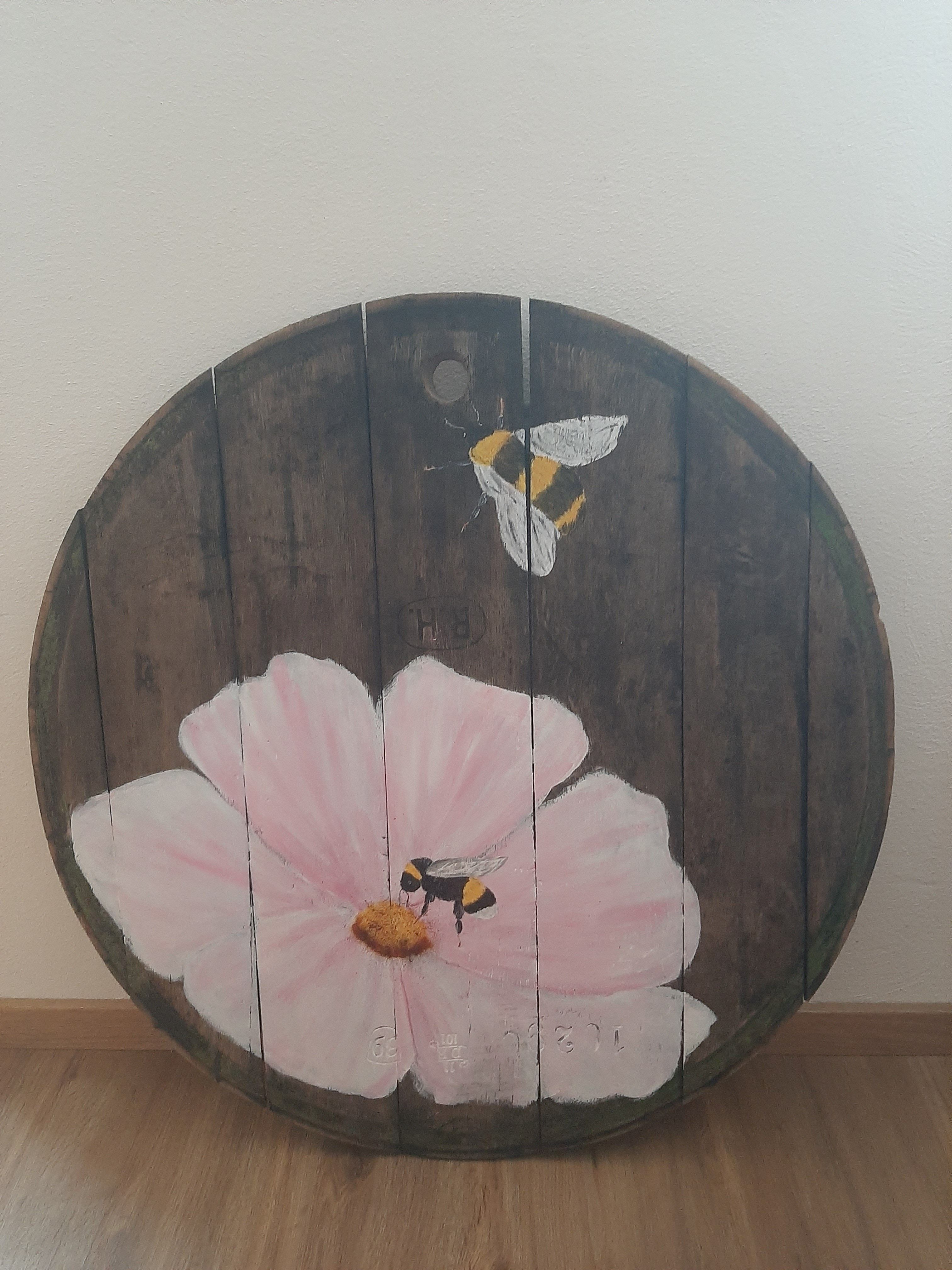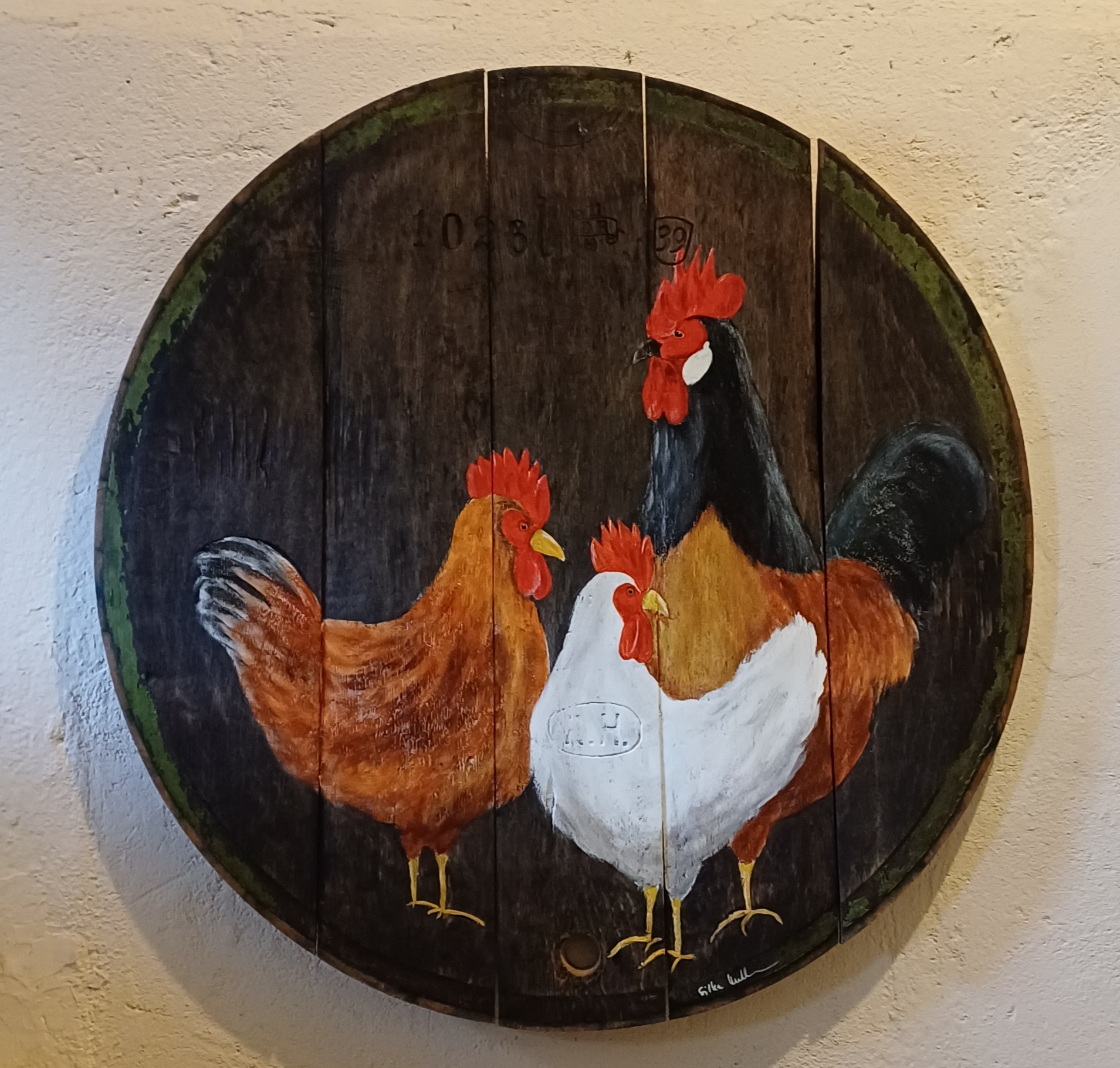 Die hier bemalten Fassdauben sind gebogene Eichenbohlen, die einst ein Fass bildeten. Wenn ein Fass ausgedient hat, wird es in der Regel auseinandergeschlagen und die einzelnen Bohlen entsorgt. Einige Künstler an der Mosel und am Rhein „retten“ die Hölzer, indem Sie ein zweites Leben bekommen.